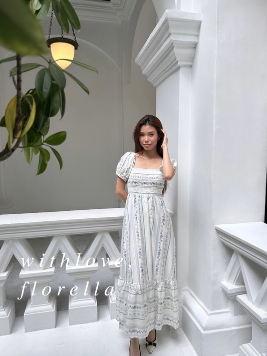 Linen Annabella Floral Midi Dress (Blue/Pink)