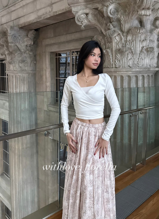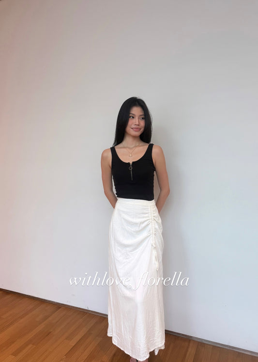 Linen Morning Milk Ruched Skirt ( Midi/Maxi )