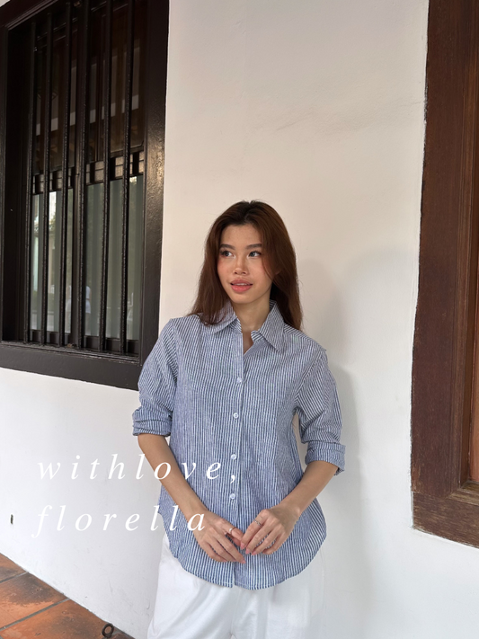 Ver 2: Boyfriend Oversized T Shirt/Outerwear in Stripes ( Linen )