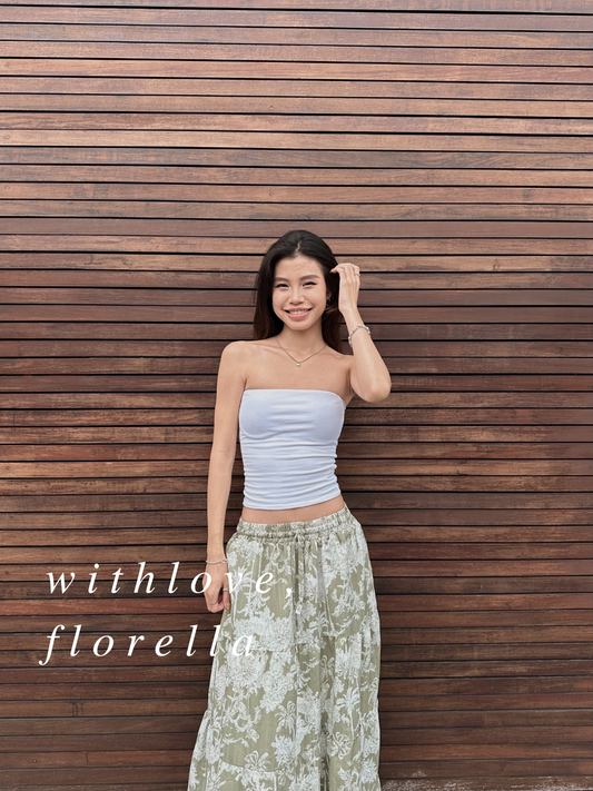 Linen Botanica Tier Maxi Skirt (White based)