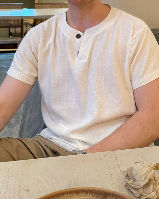 Size Up/ Valentines Special ( Men's Linen Shirt White/Khaki )