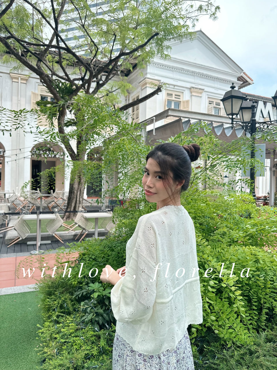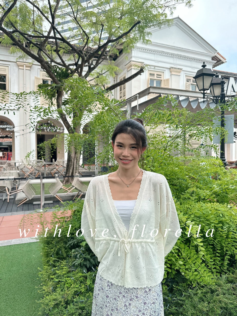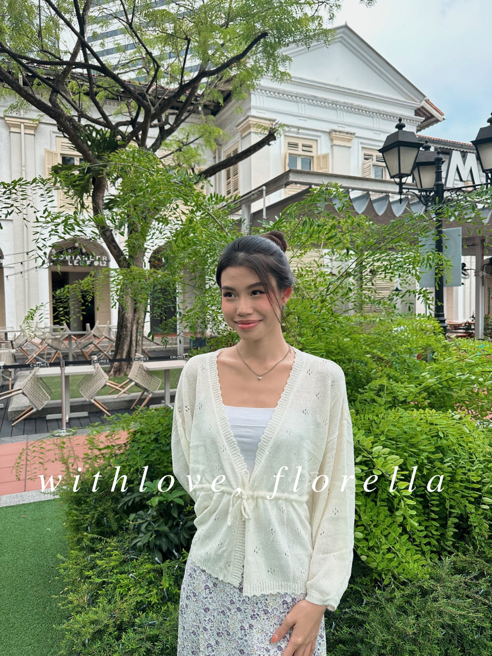 This knitted cream cardigan is a versatile and elegant piece of outerwear, perfect for adding a touch of warmth and style to any outfit. The cardigan features a delicate floral eyelet design that gives it a feminine and sophisticated look. The soft, creamy color complements a variety of wardrobe choices, making it a go-to layering piece for both casual and dressy occasions. With its comfortable fit and intricate detailing, this cardigan combines practicality with a timeless aesthetic, making it a must-have addition to any wardrobe.