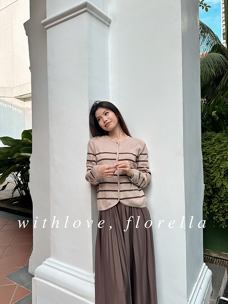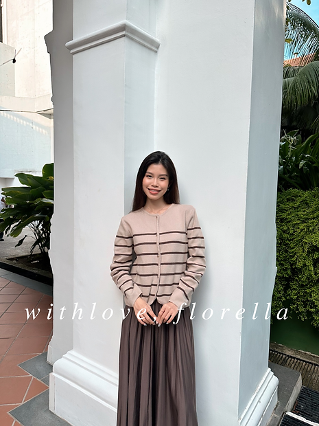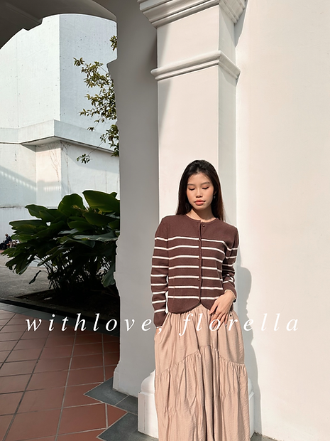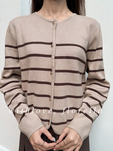 Step into classic elegance with our knitted stripes cardigan, featuring rich espresso shades. Perfectly embodying the old money aesthetic, this piece adds a touch of sophistication to any look. Made of high quality and sustainable knit material.
