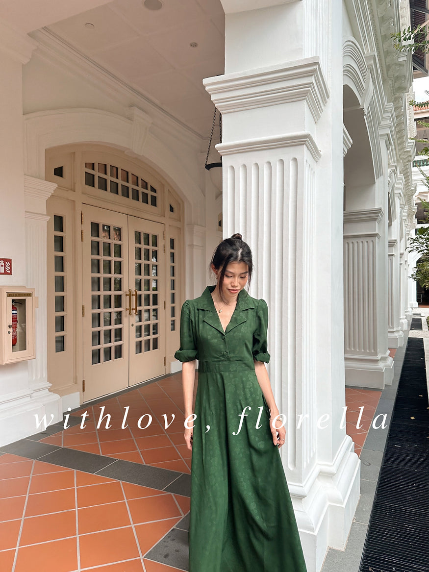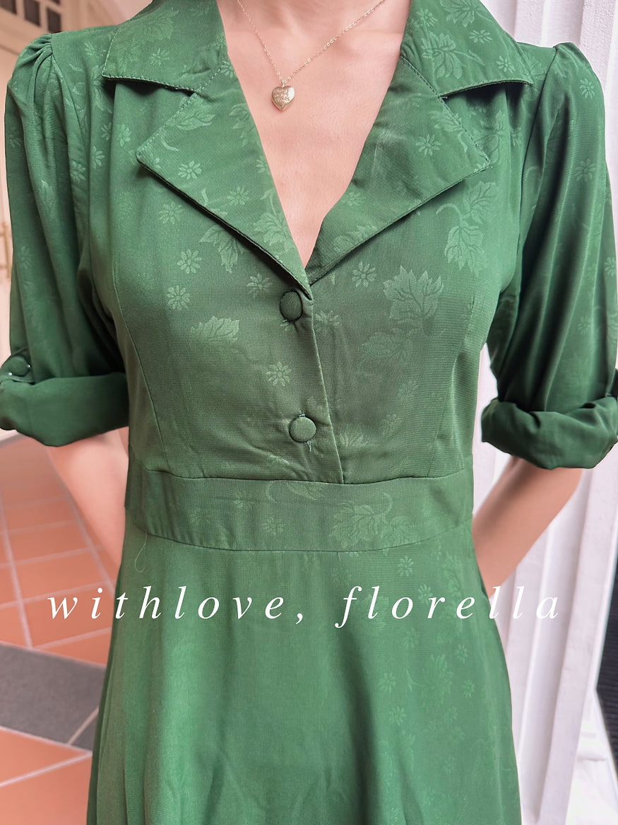 Infuse your wardrobe with laid-back elegance with our Floral Peter Pan Collar Dress, designed for everyday versatility. Featuring sleeves that can easily switch between long and mid-length, this dress offers a relaxed yet stylish option for any occasion. Available in emerald green or khaki, it's the perfect choice for adding a touch of casual chic to your look. Embrace effortless charm and timeless style with our Floral Peter Pan Collar Dress, the epitome of relaxed sophistication.